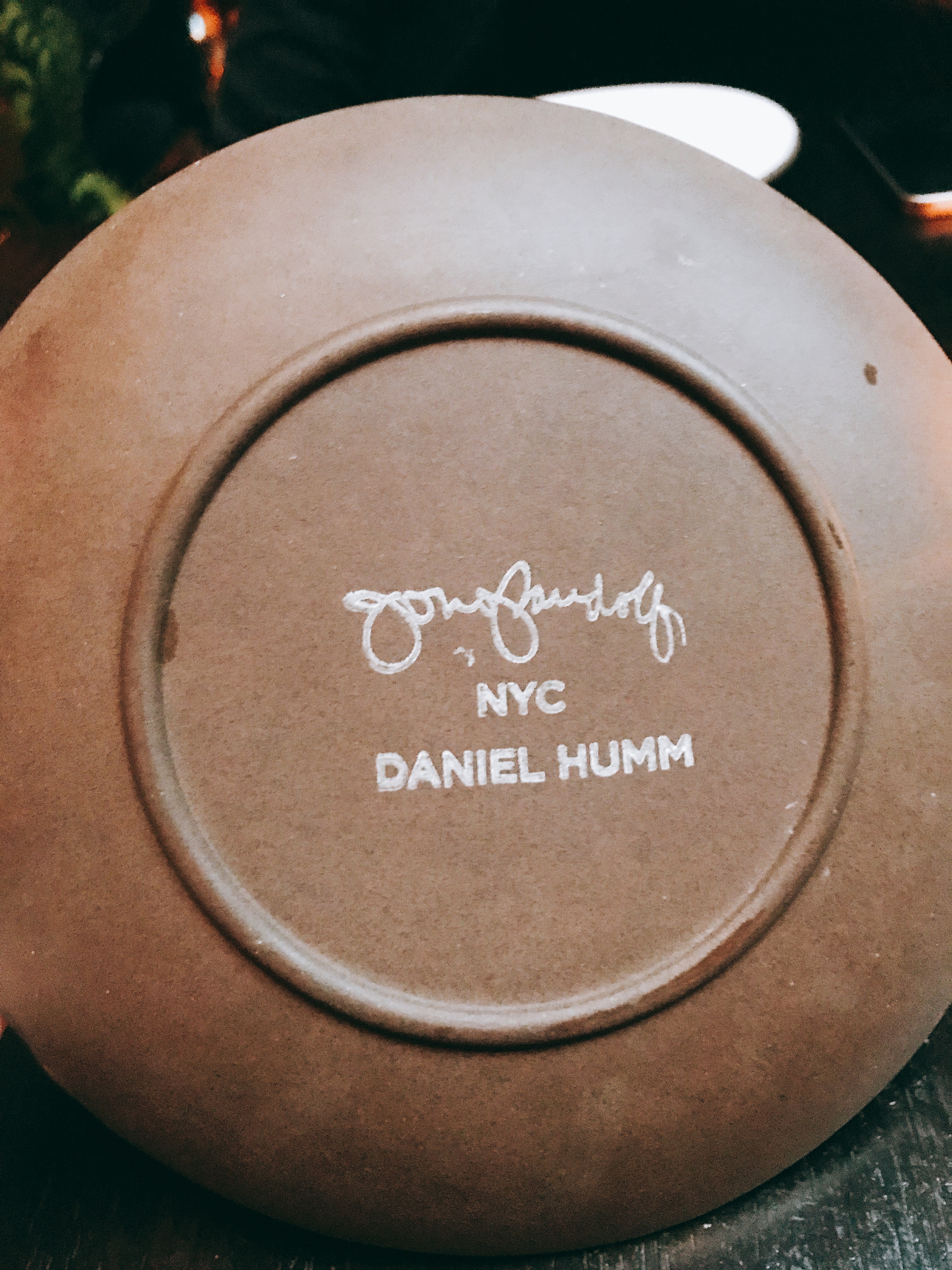 디저트 접시가 맘에 들어 살짝 뒤집어 보니 이 레스토랑의 오너 셰프인 Daniel Humm이름이 박혀있네요.